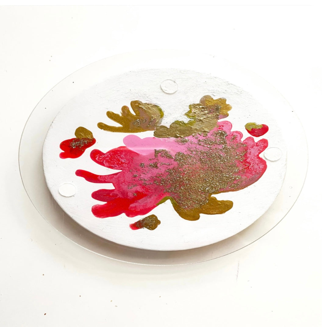 Hand painted Art Coaster. Ceramic coaster with clear acrylic cover and base. Hand painted design using inks, acrylics and glitter, coaster feet and signed on the back.